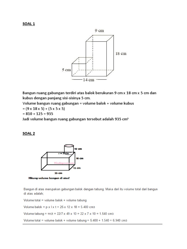 Bangun tersebut merupakan gabungan dua buah bangun, yaitu balok dan setengah tabung. Bak dalam kamar mandi tria berbentuk kubus dengan kedalaman 1 meter. Contoh soal 2 gabungan dua himpunan. Di ketahui untuk menyelesaikan gabungan dua himpunan dan contoh soalnya di atas, hal pertama yang harus anda lakukan adalah menentukan himpunan a, himpunan b, dan himpunan c terlebih dahulu. Contoh bangun ruang antara lain kubus, balok, prisma, tabung, kerucut, limas dan bola. Pengukuran bangun ruang menggunakan jarak antar titik di r³. Soal luas gabungan bangun datar coretan guru latihan soal dan pembahasan materi bangun datar anis widiyanti s si volume bangun gabungan bangun ruang mikirbae menentukan luas gabungan dua bangun datar rama aji pangestu luas bangun datar gabungan matematika sd youtube soal. Bangun ruang dan volume gabungan bangun ruang contoh soal dan pembahasan tentang bangun ruang sisi datar tentukan volume gabungan bangun ruang berikut brainly co id soal matematika kelas 5 sd bab 5 kubus dan balok dan kunci volume bangun ruang matematika sd. Coba simak contoh soal dan penyelesaian berikut Selain volume pada tulisan ini juga dibahas mengenai volume gabungan bangun ruang. Soal itulah yang dapat kami bagikan terkait soal bangun ruang kelas 2 sd tema 4. Contoh soal bangun ruang kubus. Untuk memantapkan pemahaman mengenai materi tersebut, berikut disajikan soal dan pembahasannya.